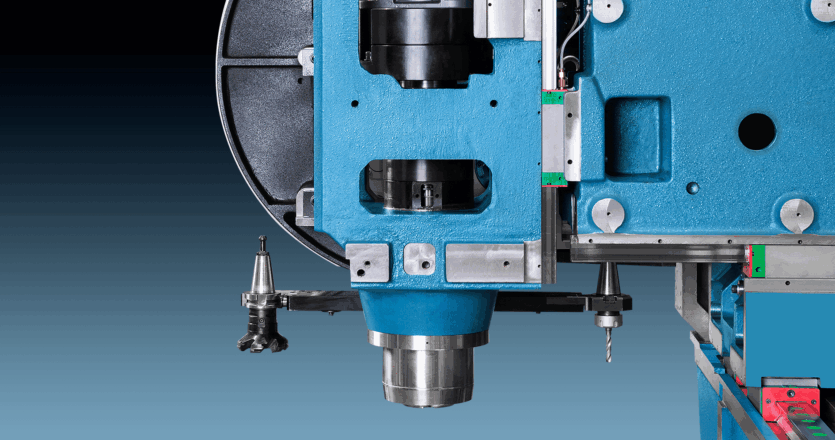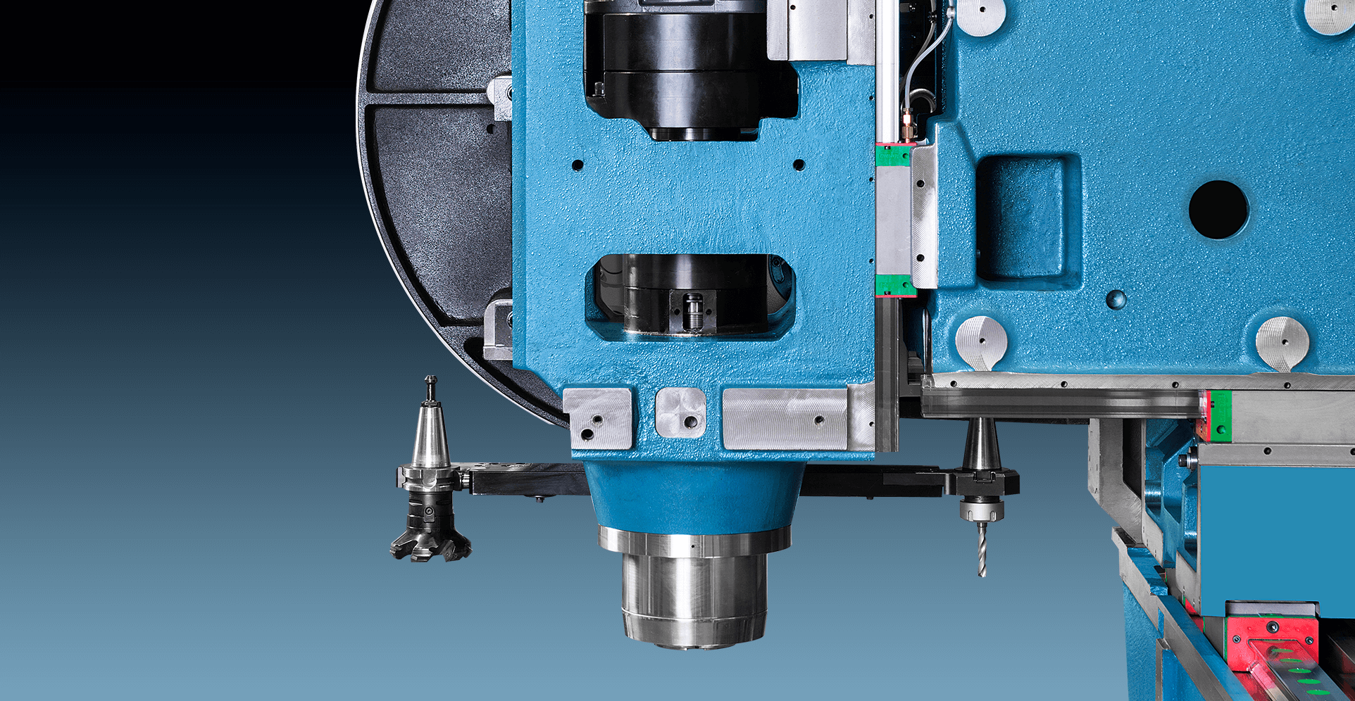 Broche à entraînement direct – directement couplée à la cartouche de la tête de broche. Le système à entraînement direct est très efficace, permettant des performances élevées en accélération et décélération. Il offre un faible niveau de bruit, élimine le jeu et amortit les vibrations. Il assure également une haute qualité dans les opérations de taraudage rigide.